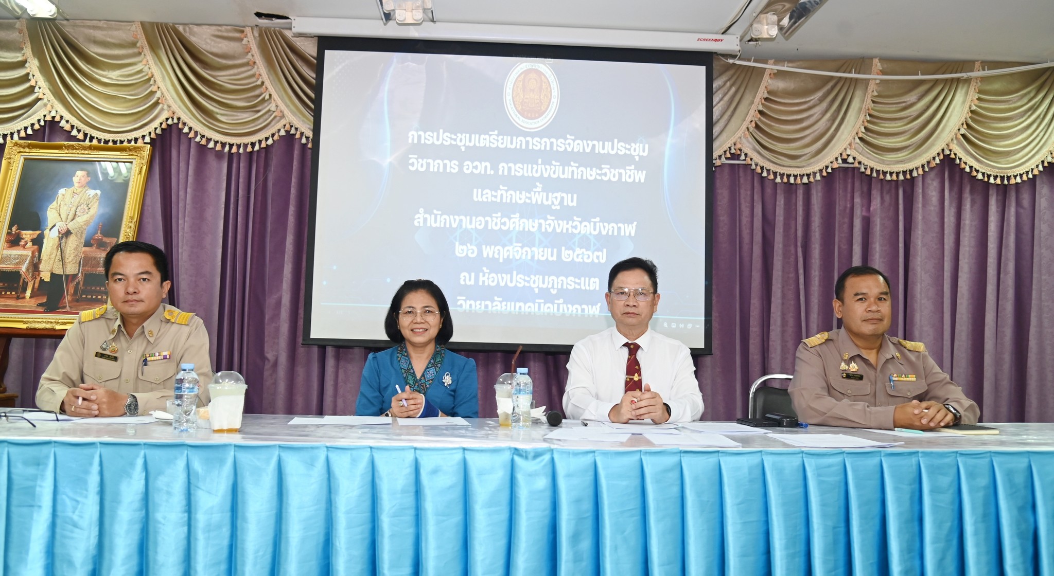 วันที่26พฤศจิกายน 2567 นายชินท์ณภัทร ก้อนคำ ผู้อำนวยการวิทยาลัยเทคนิคบึงกาฬ ผู้อำนวยการสำนักงานอาชีวศึกษาจังหวัดบึงกาฬ เป็นประธานประชุมเพื่อเตรียมการจัดการแข้งขันทักษะพื้นฐาน ทักษะวิชาชีพระดับจังหวัด เพื่อคัดเลือกตัวแทนเข้าร่วมแข่งขันในระดับภาคตะวันออกเฉียงเหนือ โดย มีคณะผู้บริหารสถานศึกษาทั้ง7แหน่งและคณะครูเข้าร่วมประชุมเตรียมการ ณ ห้องประชุมหนองปลาตอง