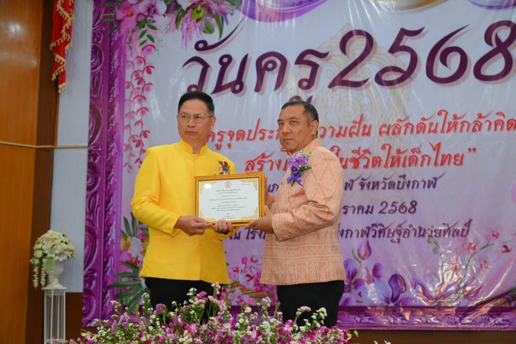 วันที่ 16 มกราคม 2568 นายจุมพฏ วรรณฉัตรศิริ ผู้ว่าราชการจังหวัดบึงกาฬ เป็นประธาน ในพิธีทำบุญและรำลึกถึงบูรพาจารย์และมอบเกียรติบัติ ครูผู้มีผลงานดีและครูดี เนื่องในวันครู ประจำปี 2568