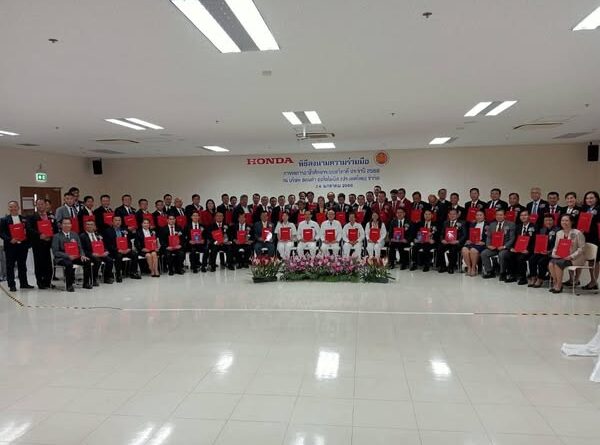กิจกรรมวิทยาลัยเทคนิคบึงกาฬ เข้าร่วมพิธีลงนามความร่วมมือ การจัดการอาชีวศึกษาระบบทวิภาคี ประจำปี 2568 มกราคม 30, 2025 admin วันที่ 24 มกราคม 2568 นายชินท์ณภัทร ก้อนคำ ผู้อำนวยการวิทยาลัยเทคนิคบึงกาฬ และ นายวิทยา สายเนตร รอง รองผู้อำนวยการฝ่ายวิชาการ วิทยาลัยเทคนิคบึงกาฬ เข้าร่วมพิธีลงนามความร่วมมือ การจัดการอาชีวศึกษาระบบทวิภาคี ประจำปี 2568 ณ บริษัท ฮอนด้า ออโตโมบิล (ประเทศไทย) จำกัด