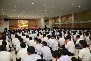 วันที่ 18 มิถุนายน 2568 นายชวลิต เข็มศิริ รองผู้อำนวยกาฝ่ายพัฒนากิจการนักเรียน นักศึกษา เป็นประธานในพิธีเปิดโครงการอบรมคุณธรรม จริยธรรม สร้างความมีวินัยและความรับผิดชอบของนักเรียน นักศึกษาใหม่ ประจำปีการศึกษา 2568 เพื่อให้นักเรียน นักศึกษา ได้รับความรู้ประสบการณ์เกี่ยกับคำสั่งสอนทางพระพุทธศาสนา พัฒนาผู้เรียนให้เป็นมนุษย์ที่สมบูรณ์ ทั้งร่างกาย จิตใจ สติปัญญา ความรู้ คุณธรรม จริยธรรม ในการดำรงชีวิต และอยู่ร่วมกันกับผู้อื่นได้อย่างมีความสุข