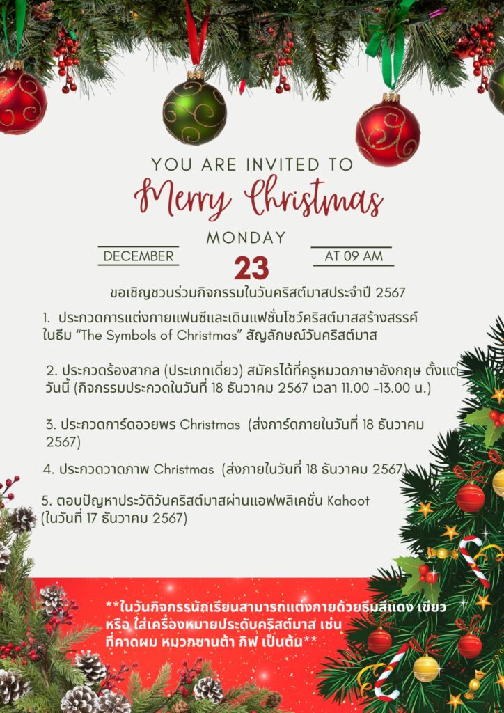 ⟢★ CHRISTMAS DAY 2024 ★⟢ ขอเชิญชวนนักเรียน นักศึกษา เข้าร่วมกิจกรรมวันคริสต์มาส ประจำปี 2567