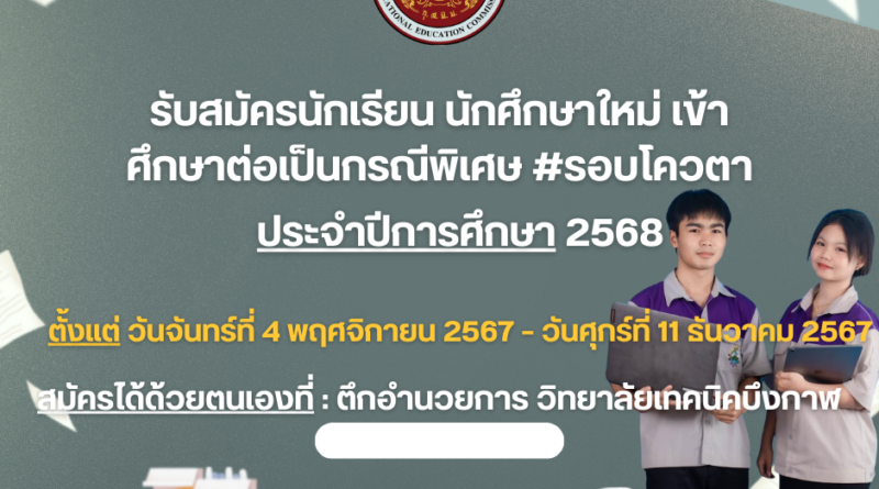 📢📢#วิทยาลัยเทคนิคบึงกาฬ รับสมัครนักเรียน นักศึกษาใหม่ เข้าศึกษาต่อเป็นกรณีพิเศษ #รอบโควตา รับสมัครผู้ที่จบ ม.3 ม.6 ปวช. หรือเทียบเท่า #ประจำปีการศึกษา 2568