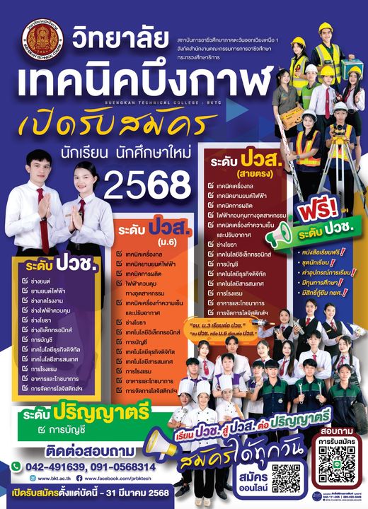 #สมัครได้ด้วยตนเองที่ : ตึกอำนวยการ วิทยาลัยเทคนิคบึงกาฬ